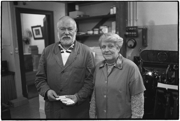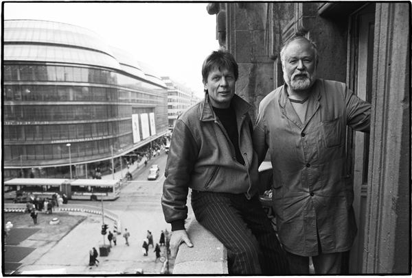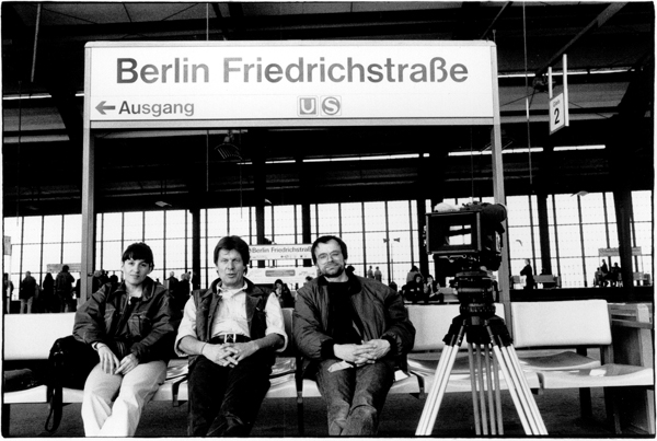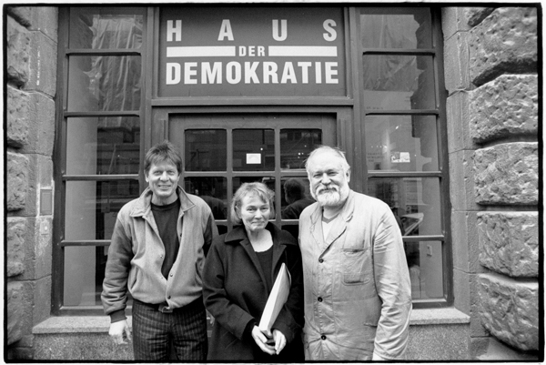 Wolfgang Ettlich, Bärbel Bohley, Drucker Raputin vor dem Haus der Demokratie