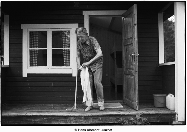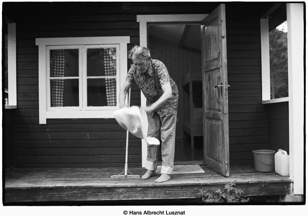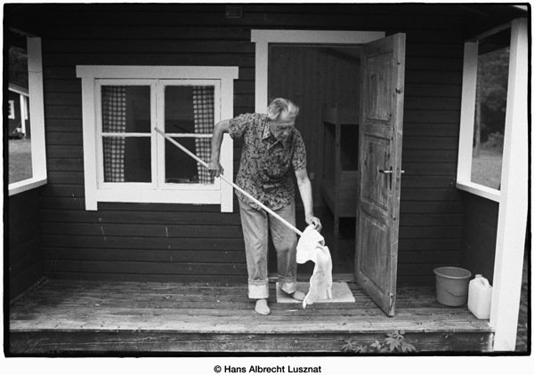 Paul Gerhard Vogel in einer Blockhütte bei einer Übernachtung in Norwegen auf dem Weg nach Alta.
